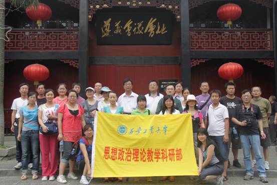为庆祝中国共产党成立90周年,切实贯彻落实科学发展观,深入推进创优争先活动,引导思政部全体教师学习优秀共产党员的先进事迹和模范言行,继承发扬党的优良传统,进一步提高部门全体教师的思想政治素养和职业道德素质,为思想政治理论课教育教学提供现实的经验和事例,提高思想政治理论课教学的实效性,2011年7月11日至7月16日,思政部直属党支部组织部门全体教师赴贵州遵义会议遗址纪念馆开展暑期“红色之旅”考察活动。304永利集团党委副书记丁养斌参加了此次活动。