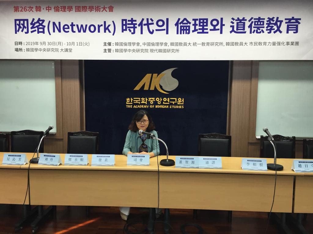 受韩国伦理学会、中国伦理学会的邀请,我院陈丛兰教授于2019年9月28日—10月4日赴韩国参加“第26次韩中伦理学国际学术大会”。本次大会的主题是“网络时代的伦理和道德教育”,共计有中韩两国的108名伦理学研究者和道德教育工作者出席了会议。