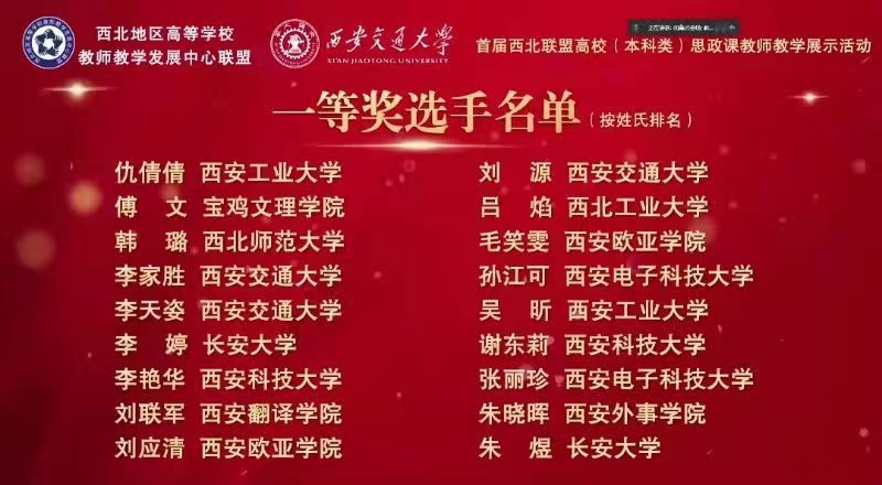 此次高校思政课教师教学展示活动由西北地区高校教师教学发展中心联盟、西安交通大学教师教学发展中心、西安交通大学永利集团304、全国高校思政课“手拉手”集体备课中心(西安交通大学)、超星集团等单位主办。来自西北五省(区)43所高校的202名教师,经过5个多月的充分准备和激烈角逐,经网络初评与决赛展示环节,共评出一等奖18项,二等奖33项。