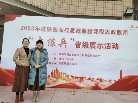 12月21日,由中共陕西省委教育工委、陕西省教育厅组织的2023年度陕西高校思政课程与课程思政教师“大练兵”省级现场展示活动在西北工业大学友谊校区举行,我院教师陈莉、杨婧分别获得“教学标兵”、“教学能手”称号。