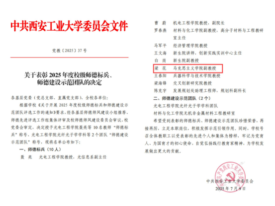 今日,我校2025年度校级师德标兵、师德建设示范团队评选结果揭晓,梁花副教授凭借扎实的教学功底、高尚的师德风范、砥砺奋进的科研态度获师德标兵称号,是马院第四位荣获该项荣誉的教师。