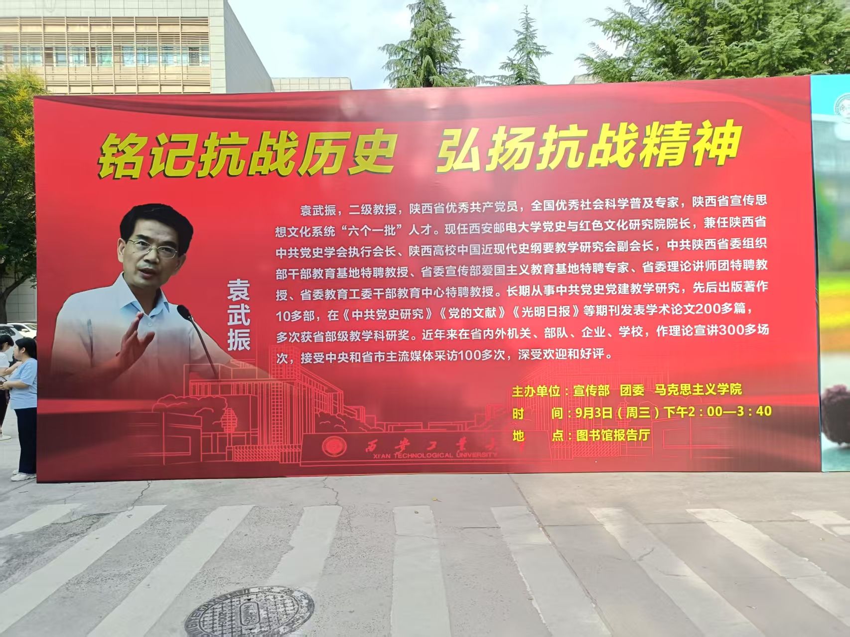今年是中国人民抗日战争暨世界反法西斯战争胜利80周年。80年前,中国人民经过艰苦卓绝的抗日战争,彻底打败日本军国主义侵略者,宣告世界反法西斯战争的完全胜利。在中国人民抗日战争和世界反法西斯战争胜利80周年之际,学院联合党委宣传部、团委隆重举行纪念活动,邀请西安邮电大学党史与红色文化研究院院长袁武振教授来我校做专题报告,以铭记历史、缅怀先烈,弘扬伟大爱国主义精神、伟大抗战精神。