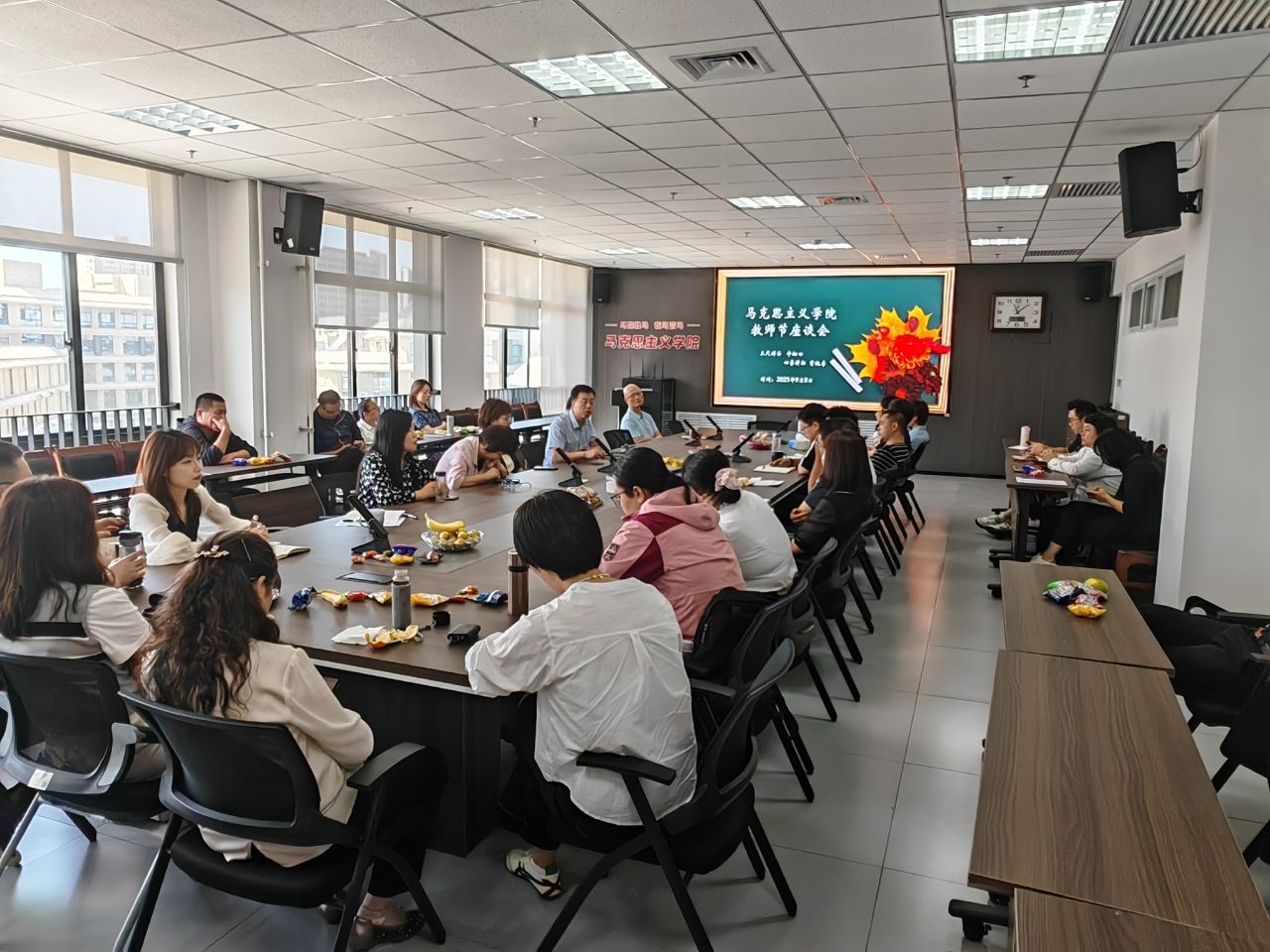 9月8日上午,我院在教7-514室召开庆祝第41个教师节座谈会,座谈主题为“凝聚师者力量,共话改革发展”。学院班子成员、教研部主任和教师代表参加座谈。