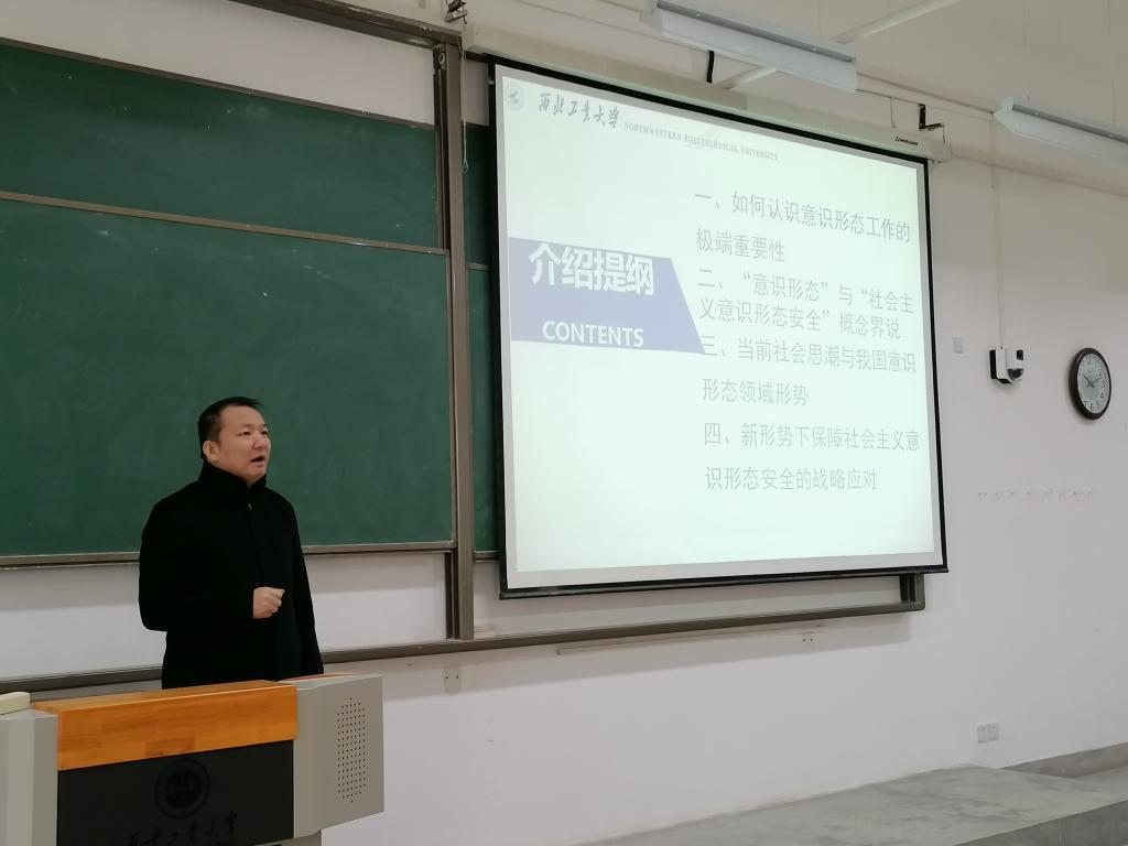 郝保权教授分别从“如何认识意识形态工作的极端重要性”、“意识形态与社会主义意识形态安全概念界说”、“当前社会思潮与我国意识形态领域形势”、“新形势下保障社会主义意识形态安全的战略应对”四个方面对当代中国社会主义意识形态安全情况进行了深入分析并于在场师生进行了深度探讨,讲述条理清晰、重点突出、启发性强,在场师生受益匪浅。