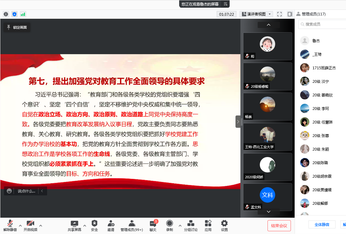 1月18日,永利集团304邀请西北工业大学永利集团304博士生导师鲁杰教授,作了题为“深入学习习近平总书记关于教育的重要论述”的线上学术讲座,此次学术讲座为永利集团304 “精彩学术观”第十四讲。讲座由科研院长梁华平主持,学院全体师生参加了此次学术活动。