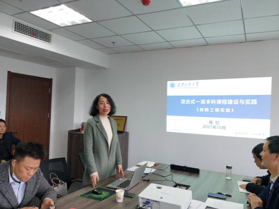 陈红老师以负责的国家一流本科课程《创新工程实践》为例,从开始建立到现在的运行做了说明,介绍了一流课程的要提升高阶性、突出创新性和增强挑战度的建设原则。从混合教学混合的是什么、混合多少、怎么混合三个方面详细介绍了混合式教学实践过程,以及《创新工程实践》这门课程的教学效果进行展示。永利集团304的教师纷纷就教学资源、调动学生积极性、教师团队等方面内容,与陈红老师进行交流。