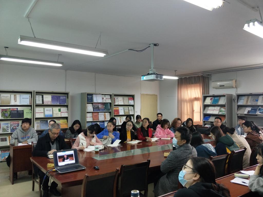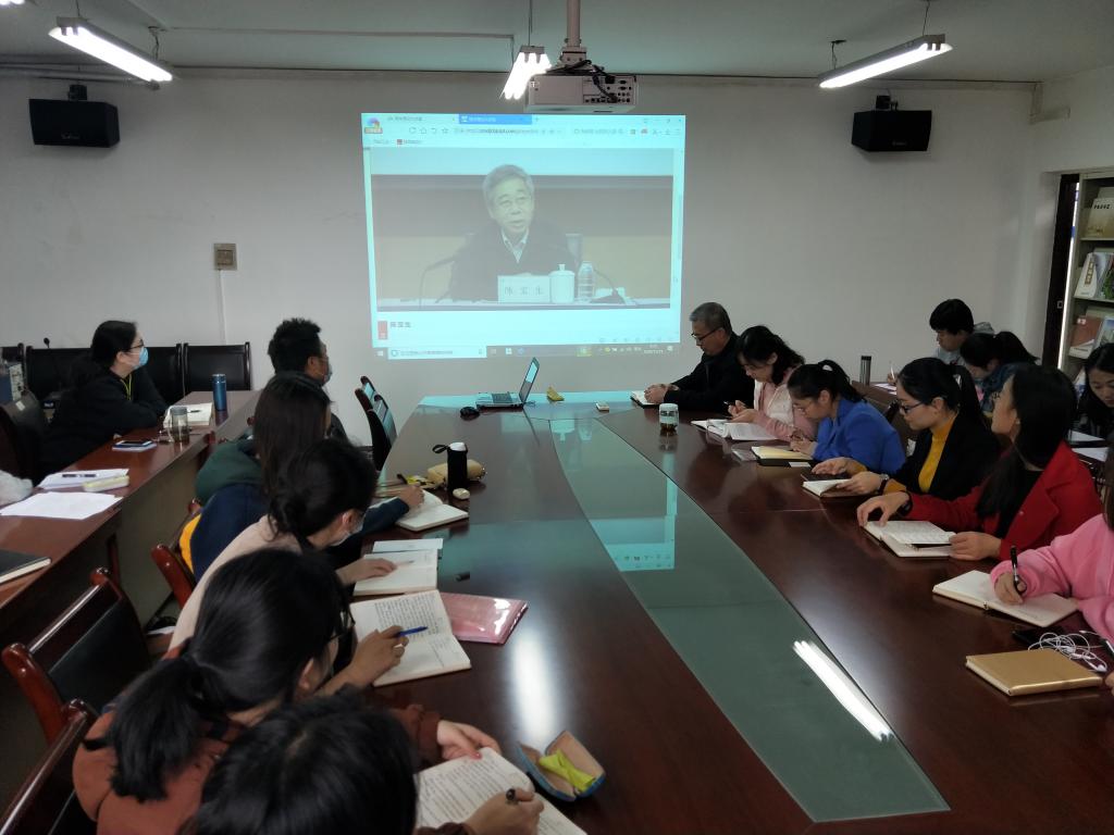 11 月13 日上午9:30,永利集团304组织学院教师和研究生,在学院会议室,通过“全国高校思政课教师网络集体备课平台”网络观看,由中央宣讲团成员、教育部党组书记、部长陈宝生作的“党的十九届五中全会精神”导学报告会。