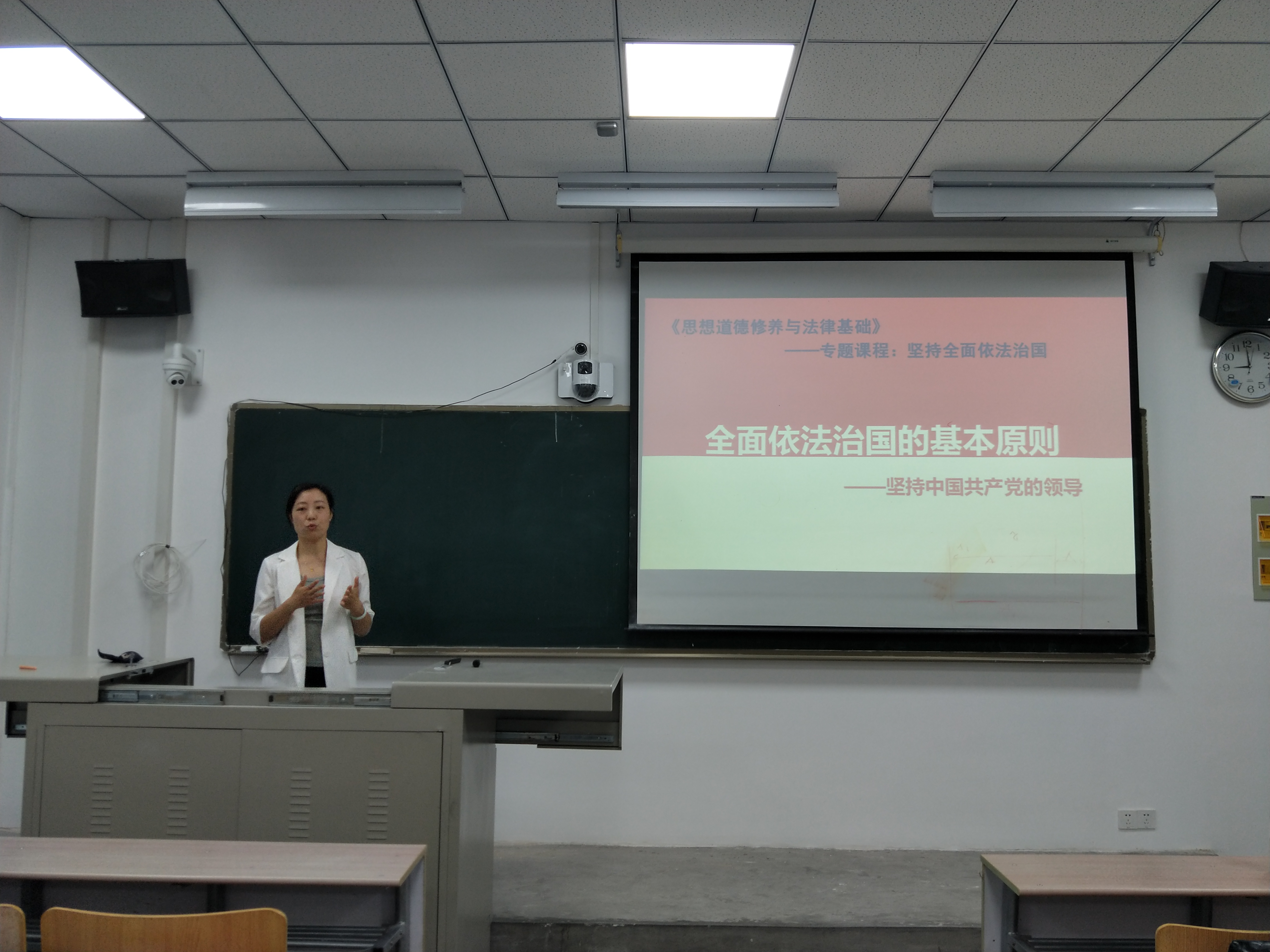 李婷老师首先做了题为“全面依法治国的基本原则——坚持中国共产党的领导”的教学示范,并详细向大家讲解了教学设计的思路和要点,以及参加省赛、国赛时的注意事项。李婷老师精彩的教学设计、严密的教学逻辑,清晰的展示讲解获得了老师们的阵阵掌声。