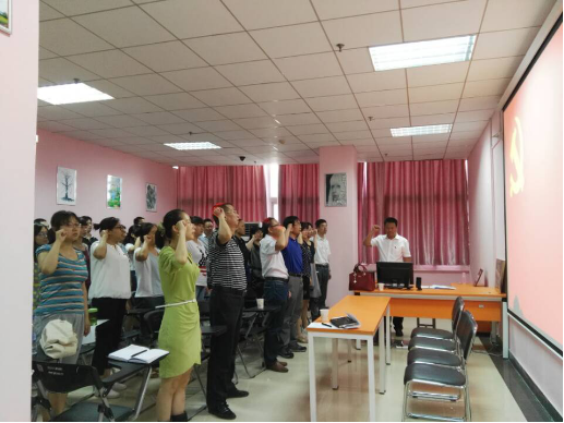 2016年7月1日,思政部教工党支部全体党员在图书馆309会议室,面对党旗,举起右拳,再次郑重宣誓:“我志愿加入中国共产党,拥护党的纲领,遵守党的章程,履行党员义务,执行党的决定,严守党的纪律,保守党的秘密,对党忠诚,积极工作,为共产主义奋斗终身,随时准备为党和人民牺牲一切,永不叛党。”这次重温入党誓词活动,是思政部教工党支部开展庆祝建党95周年庆的系列活动之一,也是结合“两学一做”学习教育部署,开展的一次“重温入党誓词”主题党日活动,组织党员重温入党誓词,对照入党志愿谈理想、谈信念,对照入党誓词找标准、找差距,以当初入党时的真诚和激情坚定理想信念,增进对党的感情。旨在与时俱进,在于恪守承诺,在于笃行,目的就是要使思政部全体党员牢记誓词,发挥党员的先锋模范带头作用,积极投身教学、科研和为学校改革发展服务之中。
