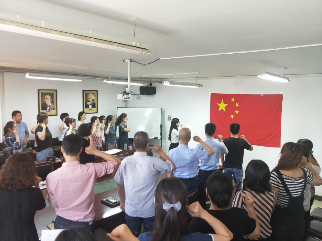 会议第二阶段,学院开展师德师风宣誓活动。在冯婷老师的带领下,学院教师面向国旗庄严宣誓:我志愿作一名光荣的人民教师……,嘹亮的宣誓声表达自己作为一名教师的自豪感和使命感。此次宣誓活动拉开了我院2020年师德师风建设月的帷幕,倡导全体教师用习近平新时代中国特色社会主义思想铸魂育人,落实立德树人的根本任务,争做“四有好老师”。