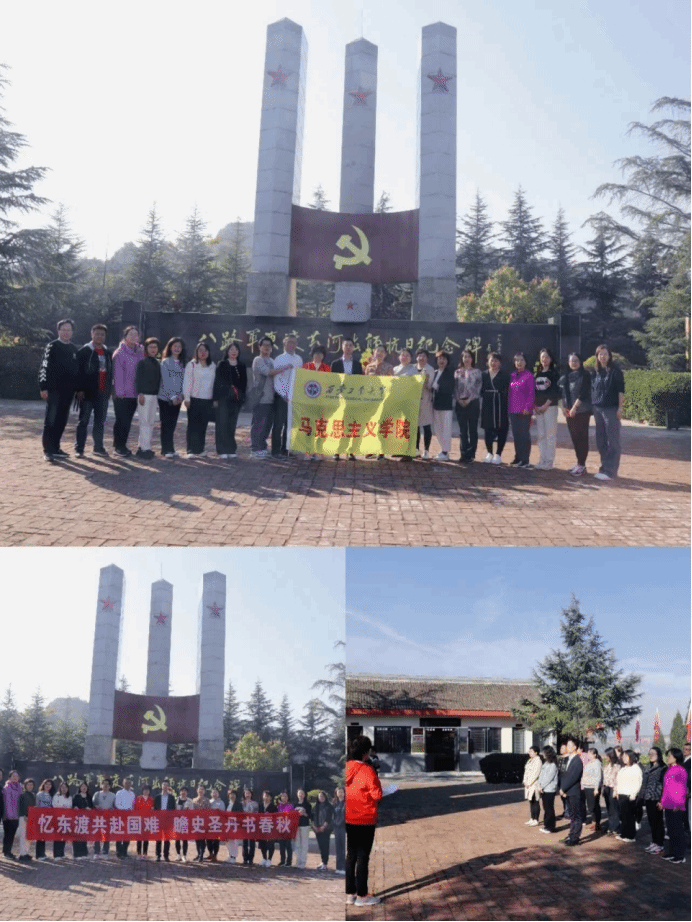 为贯彻落实党的二十大精神,积极落实“学院活力提升年”方案,大力推进学习型党支部建设,进一步提高支部教师党员的思想政治水平和党史学习教育热情,2023年10月22日,思想道德修养与法治教研部党支部、习近平新时代中国特色社会主义思想教研部党支部、毛泽东思想和中国特色社会主义理论体系概论教研部党支部联合开展“忆东渡共赴国难,瞻史圣丹书春秋”主题党日活动,三个支部的党员教师前往红色实践教学基地与中华优秀传统文化教育基地韩城八路军东渡黄河出师抗日纪念园以及司马迁祠进行了参观学习。