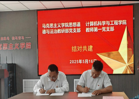 首先,双方党支部进行结对共建签约。马克思主义思想道德与法治教研部党支部书记赵东与计算机科学与工程学院教师第一党支部书记吴琼代表党支部在结对共建协议上签字。通过党建结对,两个支部了解彼此在党建工作中的好经验、好做法,凝练和打造党建共建品牌。