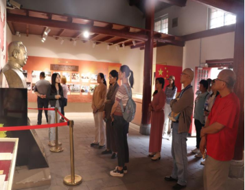 第二阶段,党员同志们走进蓝田县九间房镇街子村汪锋同志故居纪念馆。在这里,党员同志们通过百余幅历史照片系统回顾了汪锋同志的革命生涯,深切感悟其对党忠诚、为国奉献、为民服务的崇高品格。展馆重点陈列的家属捐赠文物——一副眼镜与两件军大衣,无声见证着这位革命家从热血青年到主政一方的成长轨迹:1936年秘密传递《中共中央致国民党书》的惊险历程,新中国成立后主持西北民族工作的实践探索,生动诠释了共产党人“人民至上”的执政理念。透过斑驳的实物与详实史料,汪锋同志跨越半个世纪的忠诚信仰,在历史回响与现实传承的对话中愈发清晰可鉴。