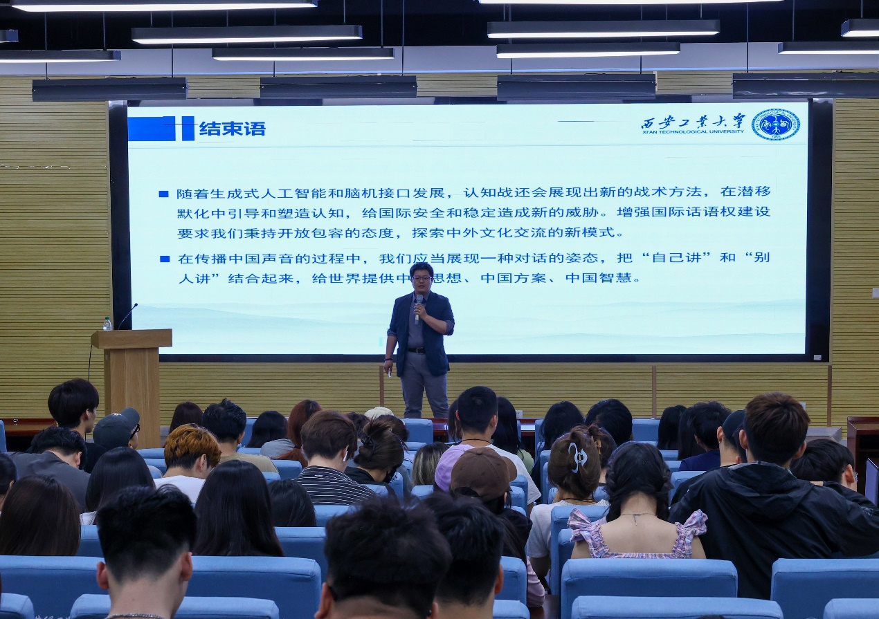 5月15日,西安明德理工学院艺术与设计学院特邀永利集团304马克思主义基本原理教研部主任周意岷副教授做了题为《新时代大国外交视野下的对外传播》的主题讲座,讲座由艺术与设计学院播音与主持艺术专业辅导员刘思瑞主持,播音与主持艺术专业2022级、2023级全体同学参与。