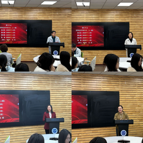 会议第二阶段,一等奖获奖同学依次上台,分享了他们的论文基本观点、写作思路、框架设计以及写作过程中的宝贵经验与独到见解。永利集团304的周意岷副教授和梁花副教授对第一组优秀论文进行了点评,陕西科技大学永利集团304的闫鹏副教授和郭丹副教授则对第二组优秀论文进行了点评。老师们从论文的选题意义、学术观点、框架结构、创新之处与提升建议等多个维度进行了深入剖析,并鼓励同学们继续努力,不断加强自身的科研能力,以取得更高学术成果。