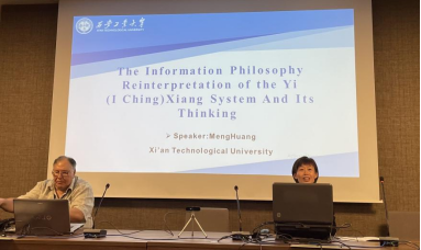 各分组讨论会就信息哲学在智能科技和智能社会快速发展的背景下面临的新挑战和发展机遇、信息范式相关的概念的界定以及信息哲学和其他哲学流派的比较研究等相关议题展开深入的探讨交流。我院黄萌副教授于6月25日下午参加了“中国哲学与信息哲学比较研究”的分组讨论,并以“《易》象体系及其思维的信息哲学重释”为题作主题报告。