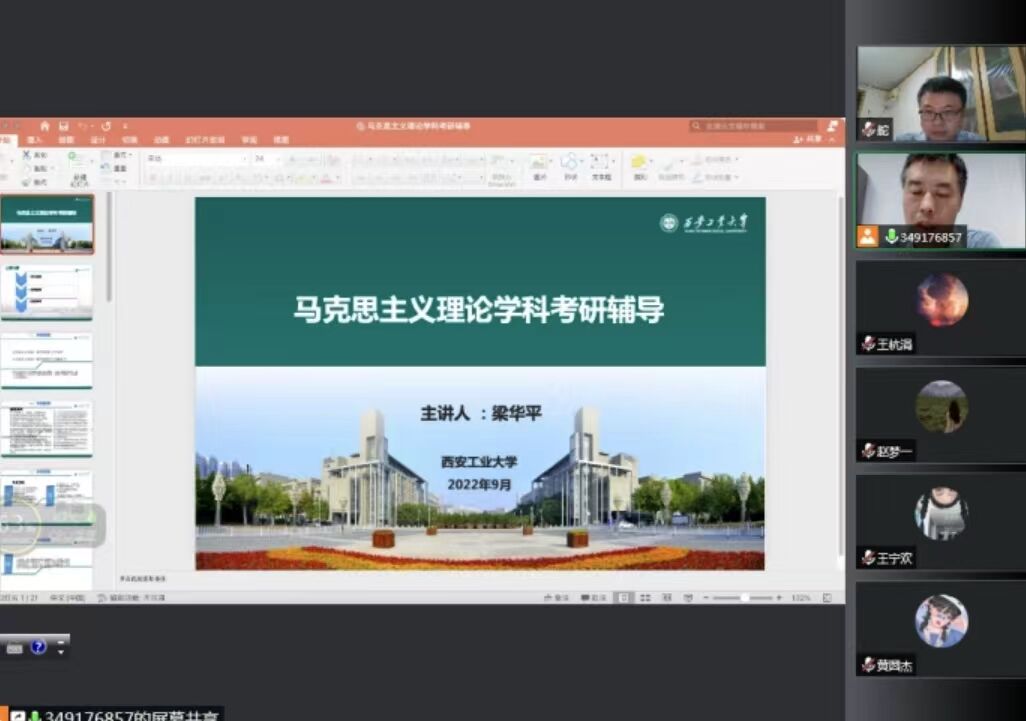 9月16日,永利集团304副院长梁华平通过腾讯会议形式面向西安文理学院永利集团304大三、大四学生进行了考研辅导。辅导从学科现状(我校招生学科专业分布)、如何备考(专业课考试科目及重难点)及注意事项几个方面进行了讲解,并与部分学生进行了线上互动交流。通过本次宣讲,使该校学生进一步了解我校马克思主义理论学科的特色优势、招生情况、导师队伍及复习备考注意事项,有利于增强学生报考的意愿。