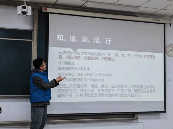 在每位同学进行筹备讲课内容过程中,增加了马克思主义理论知识储备,提升了专业能力,也向其余学生传递出一种积极的学习态度和自发性,发扬我校“敦德力学,知行相长”的校训,让学生们将学习当成一种习惯,将思考当作一种乐趣,紧抓热点难点,不断探索新时代思政教育如何赓续笃行。