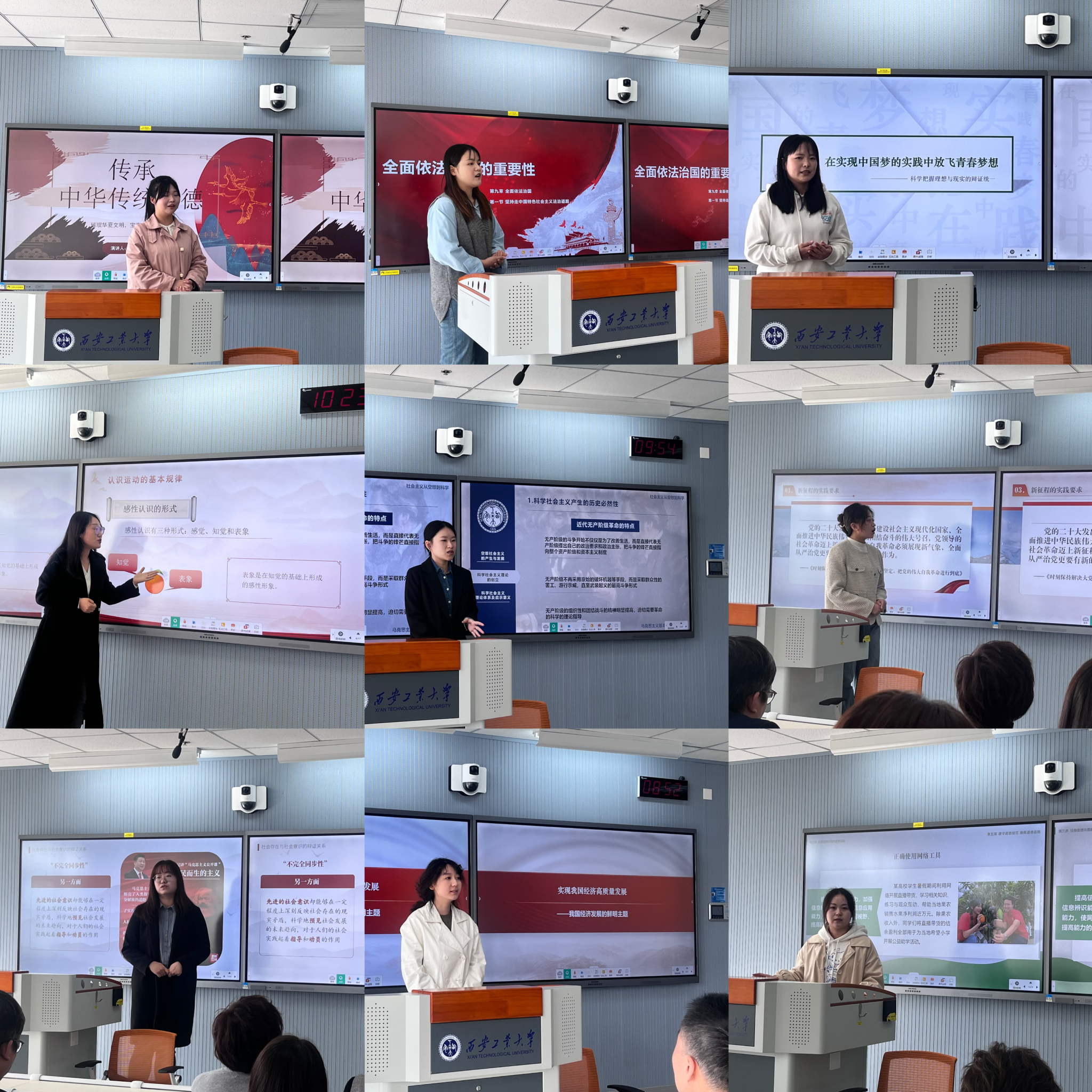本次大赛经历了网络初赛和现场展示两个阶段的激烈角逐。在前期参与了网络初赛的三十一名同学中,有九位选手脱颖而出参与到此次现场展示阶段,他们以生动的语言和饱满情感,将理论联系实际,深入浅出地讲述了一堂堂精彩的思政课。