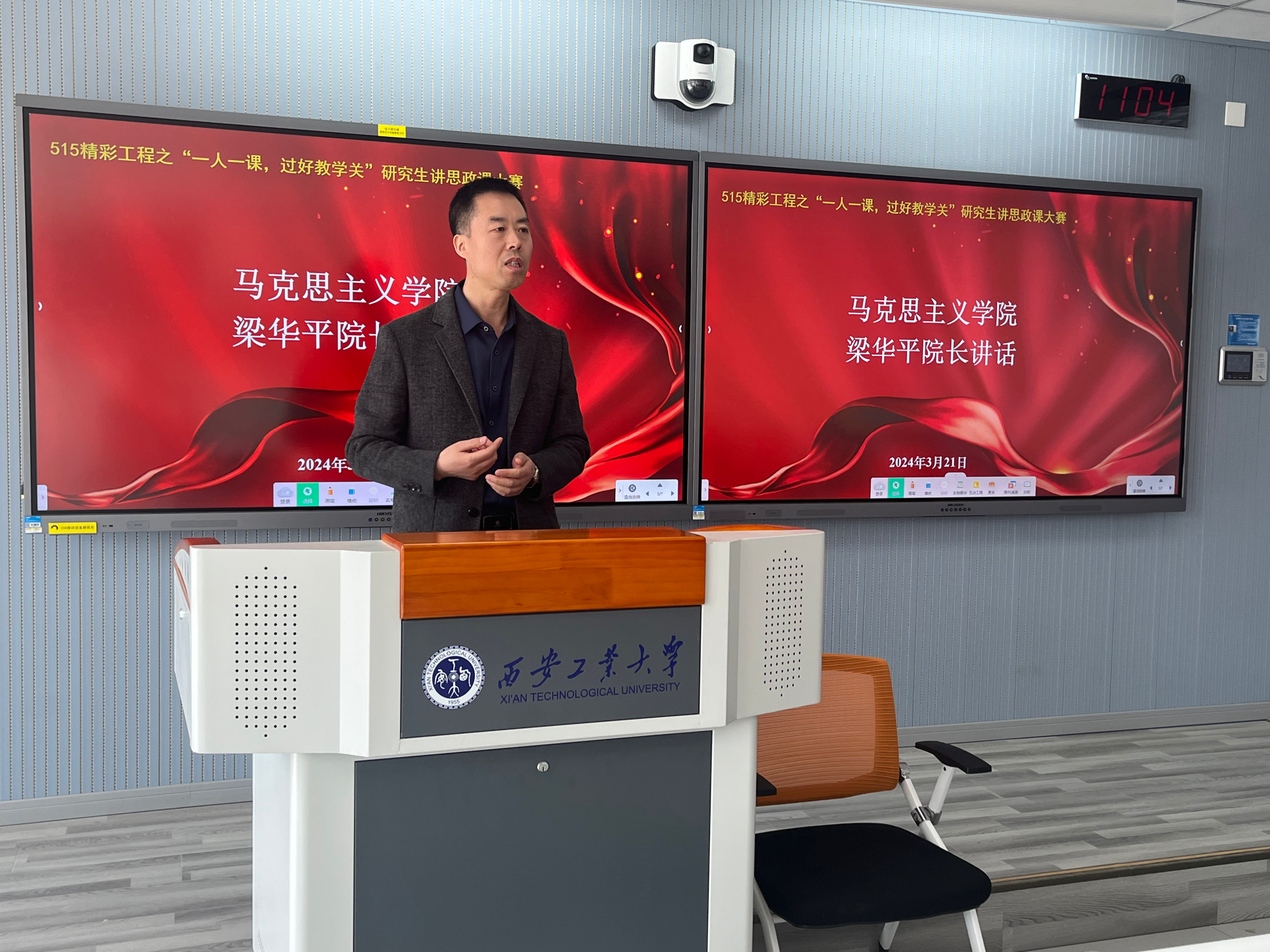 梁华平在讲话中重点强调到,同学们讲授过程中要抓住“黄金30秒”,做好课程导入;并指出本次活动不仅是一次讲课活动,而是对自身综合素质提升的一次锻炼机会,鼓励全体学生积极参加,抓住每次提升自身能力的机会。